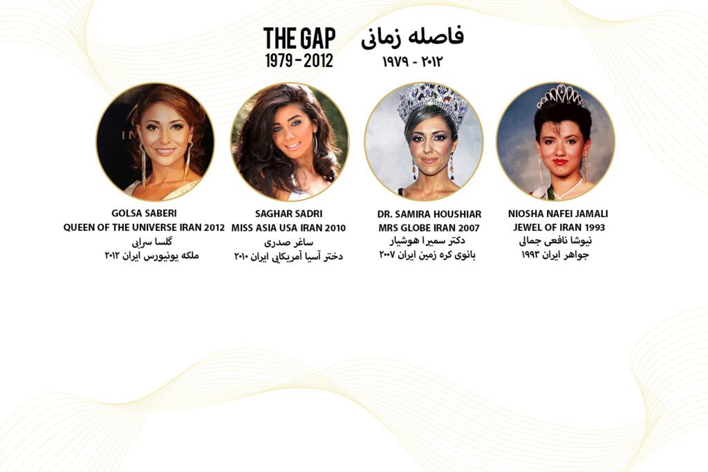After the 1979 Islamic Revolution, mandatory hijab laws and new regulations made beauty pageants illegal in Iran. Many Persian women migrated and independently represented Persia on international stages or competed under their countries of residence. Research indicates that approximately ten Persian women were crowned abroad during this 33-year period.