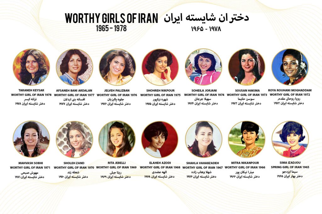The first Persian beauty competition, Spring Girl, was launched by Zan-e Rooz magazine in 1965. It evolved into Worthy Girls of Iran, crowning 14 Persian queens over the years. Around nine winners represented Persia internationally, culminating with the 1978 crowning of Taraneh Keysar at Tehran’s Hilton Hotel.