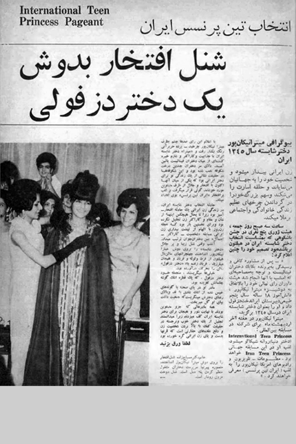 In 1966, Mitra Nikanpour, a 17-year-old, was selected and crowned as the first “Dokhtareh Shayesteh Iran” (Worthy Girl of Iran), marking a significant shift in how the pageant was managed during that period. A few months later Zan‑e Rooz magazine announced that their winner would participate in the Miss International Teen Princess pageant, held for the first time in Chicago, United States and Mitra Nikanpour went on to represent Iran in the international competition.