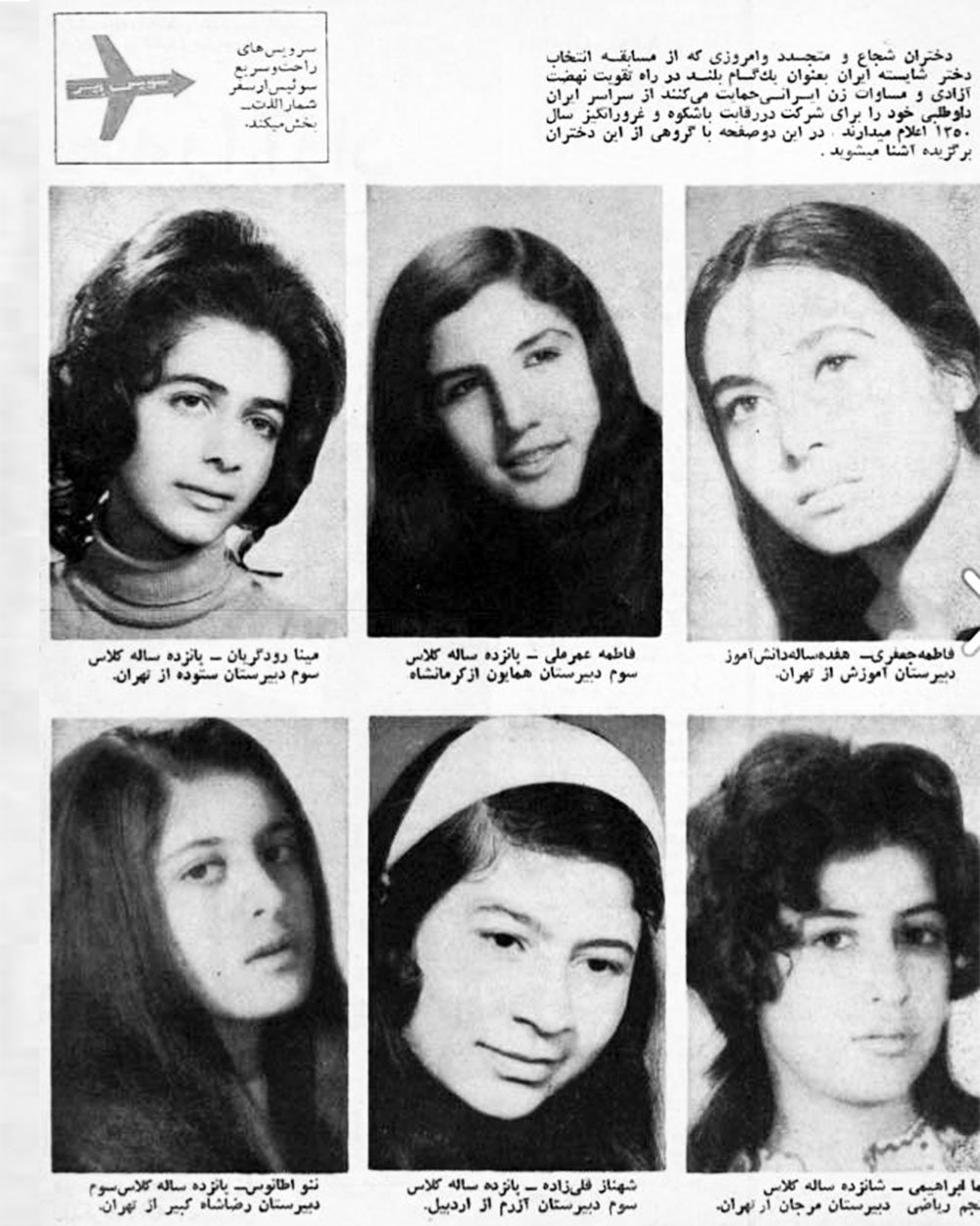 In 1971, Mahvash Sobhi, a 17-year-old high school student from Tehran, entered the national beauty pageant. Competing against numerous contestants from across the country, she was crowned Dokhtareh Shayesteh Iran (Worthy Girl of Iran). Following her victory, she was prominently featured in Zan-e Rooz magazine, one of Iran’s leading publications of the era, which highlighted her achievement and introduced her to a national audience.